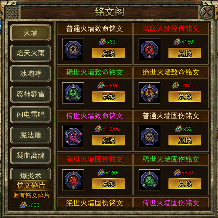 新增传世铭文,并开放所有的铭文兑换,只要收集的铭文碎片足够即可兑换相应的铭文。