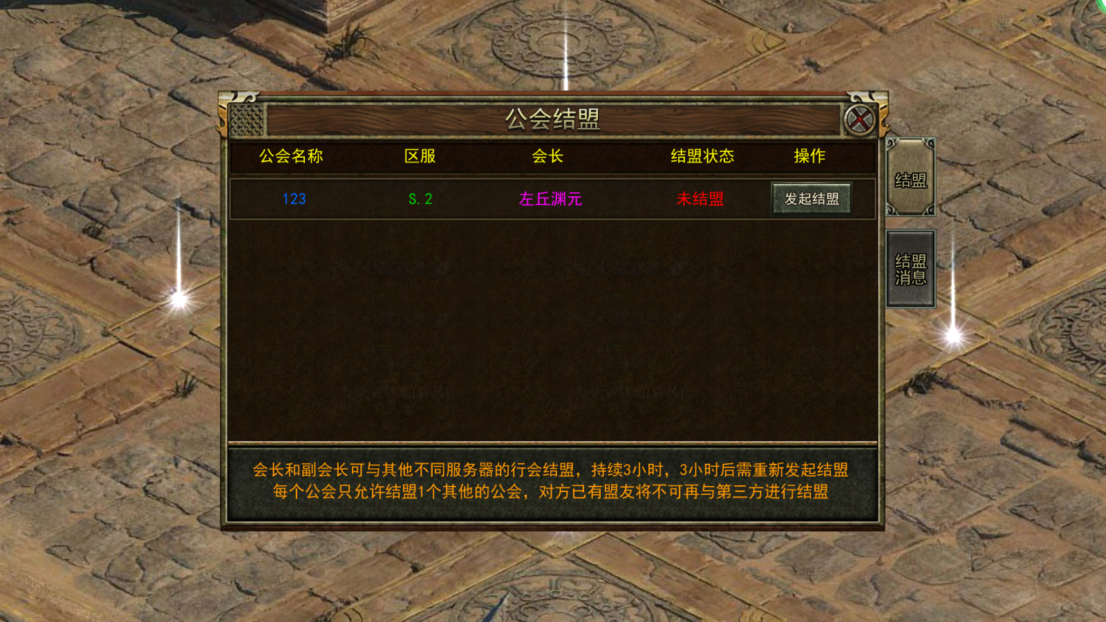 鸿蒙战场和焚天宝地新增结盟机制,不同服务器的公会可以进行结盟。