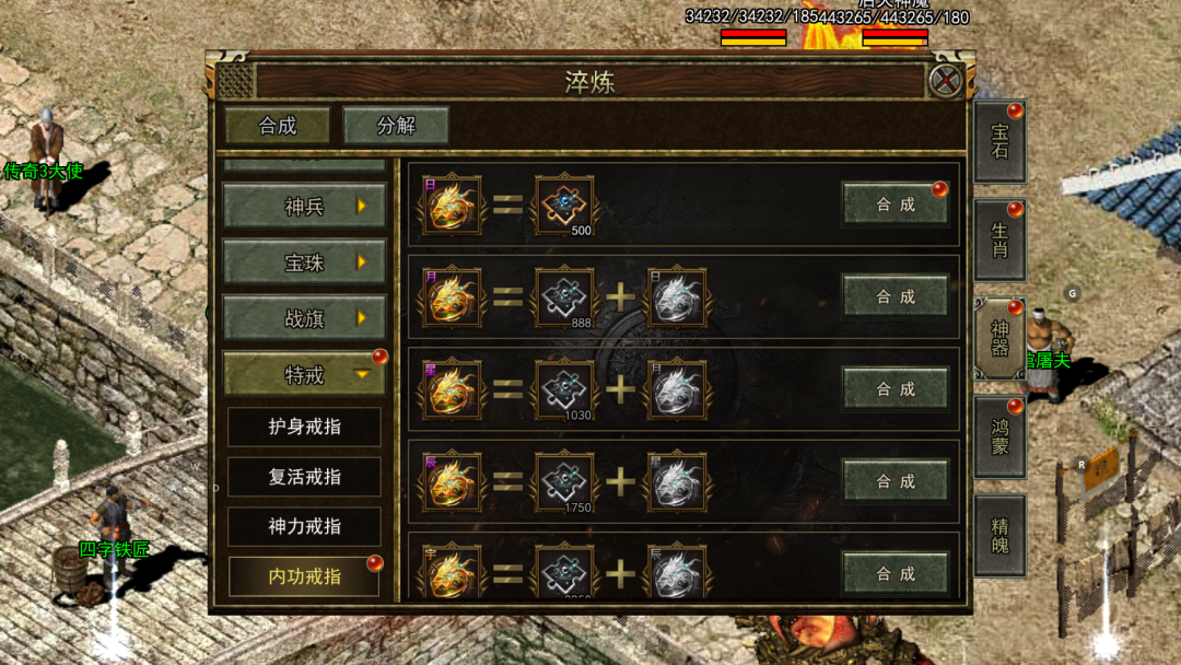 新增特戒「内功戒指」,消耗的材料不变,依旧用特戒碎片合成升级,具体效果可游戏中查询。